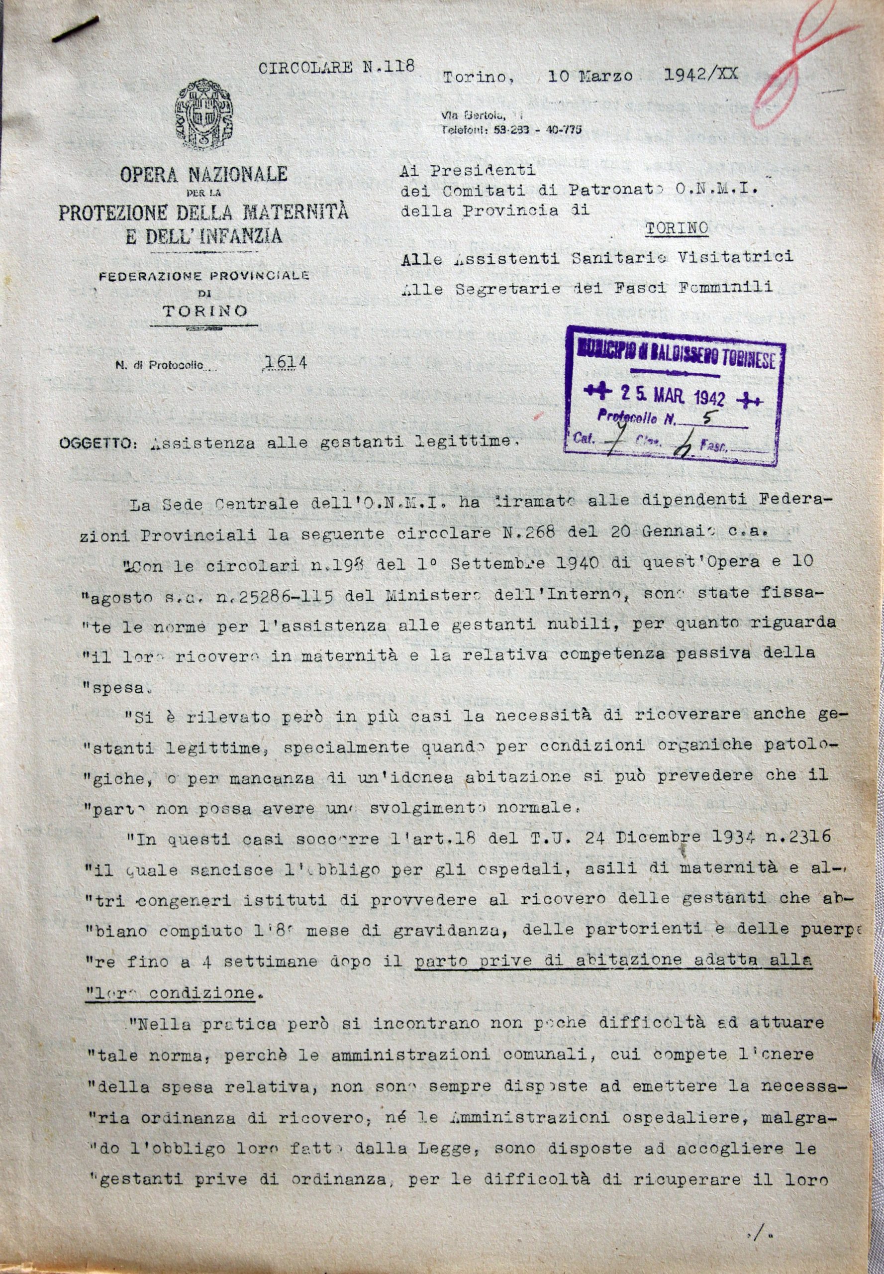 L’Opera Nazionale per la Protezione della Maternità e dell’Infanzia ONMI), intorno agli anni Trenta, si occupava di donne in gravidanza, indigenti e sole;