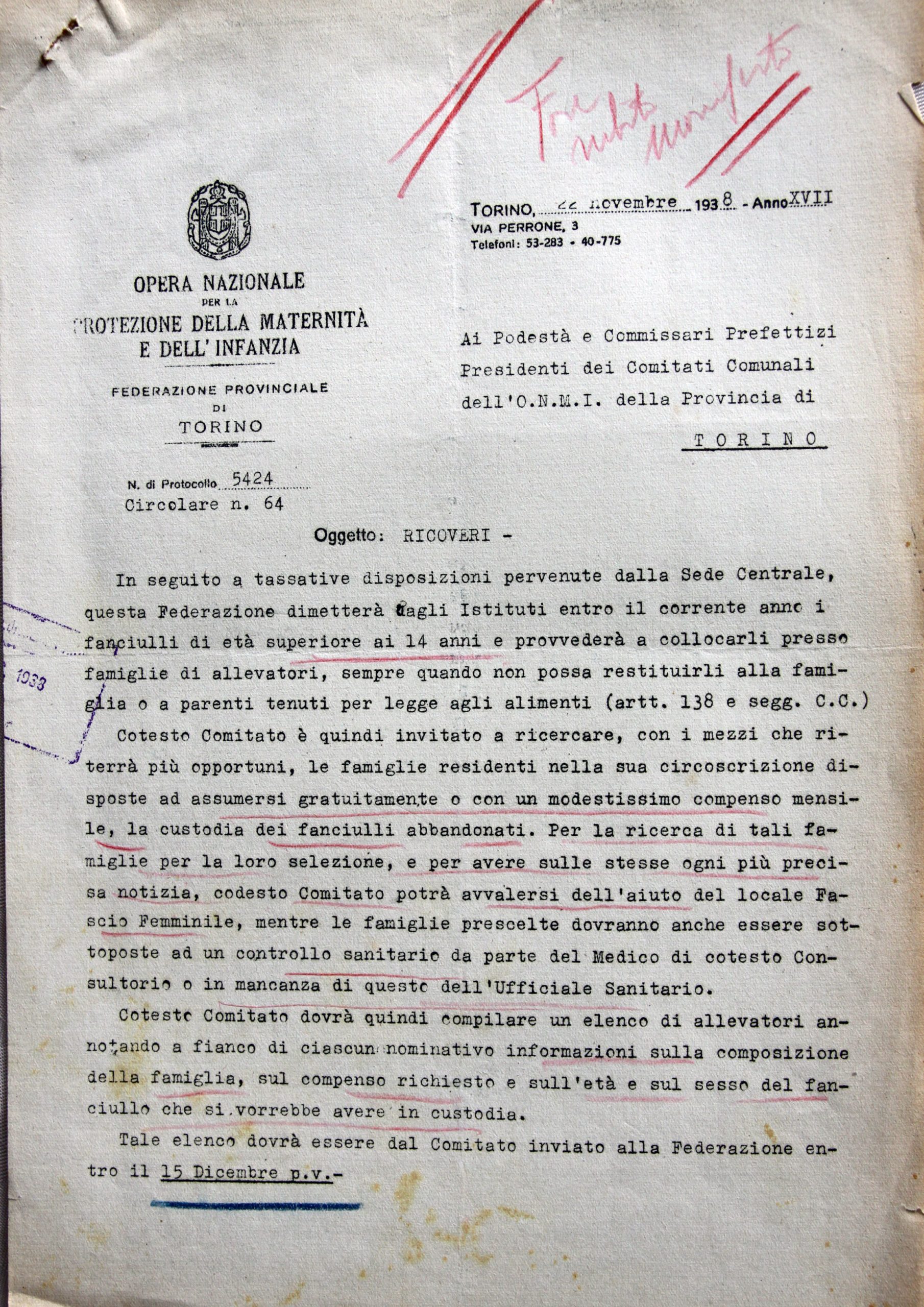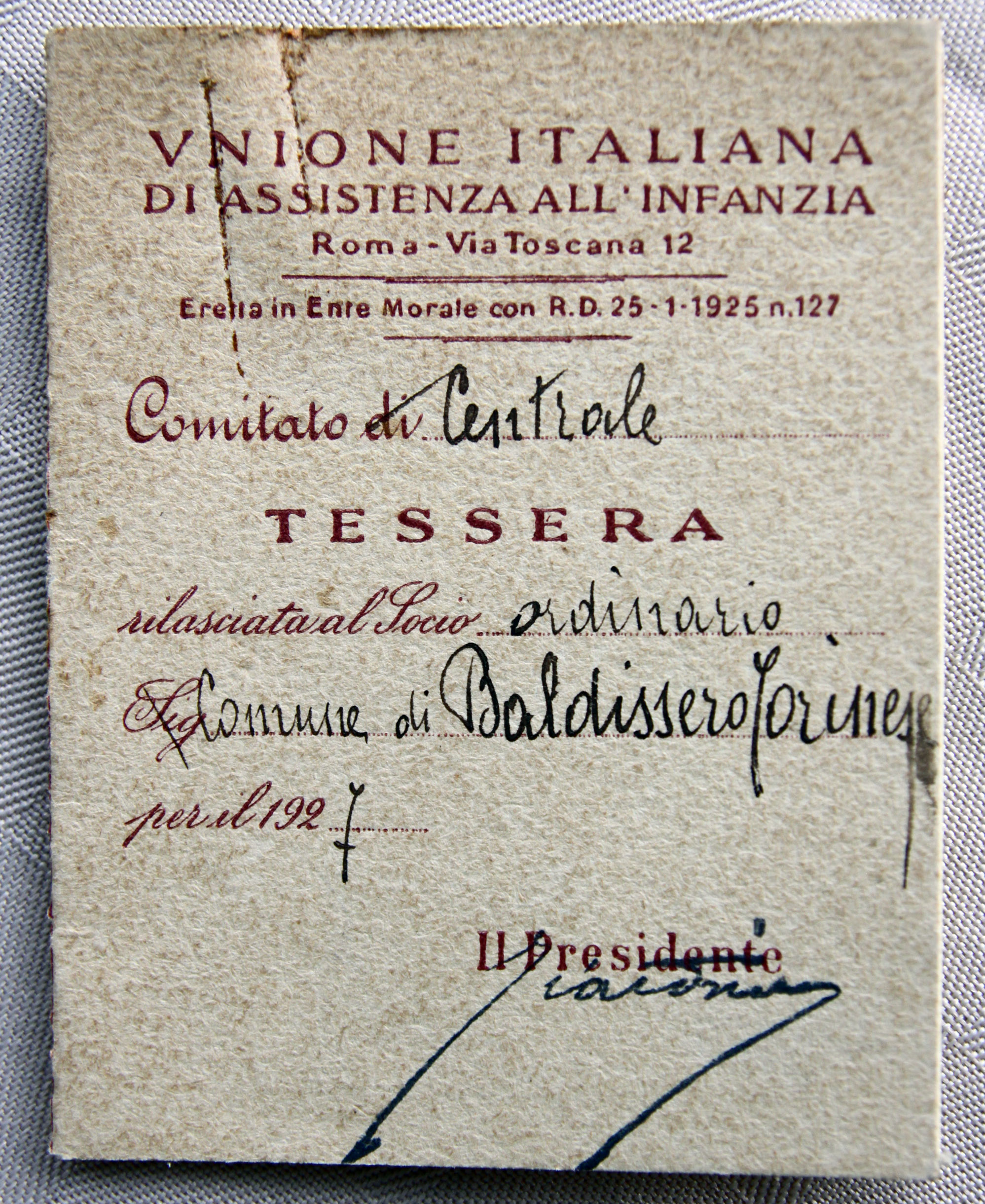 Un’altra associazione cui il comune di Baldissero aderisce nel 1926 è l’Unione nazionale di Assistenza all’Infanzia
